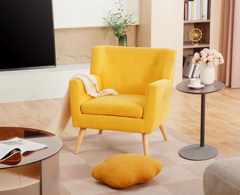 Upholstered Tufted Button Armchair Wooden Leg Yellow